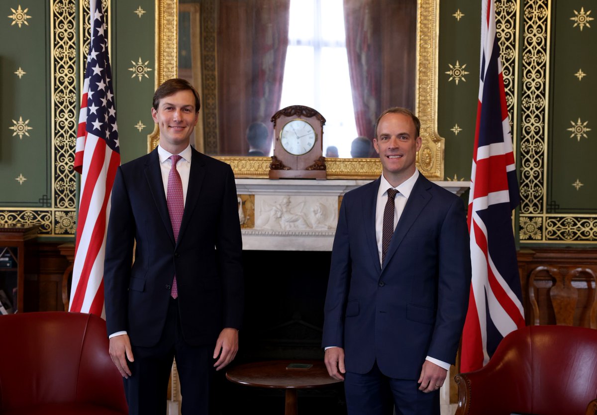 Dominic Raab On Twitter I Met With Jaredkushner Today We Discussed The Historic Israel Uae Deal And Uk Efforts To Encourage Israeli Palestinian Dialogue I Reaffirmed Uk Commitment To A Negotiated Two State Solution
